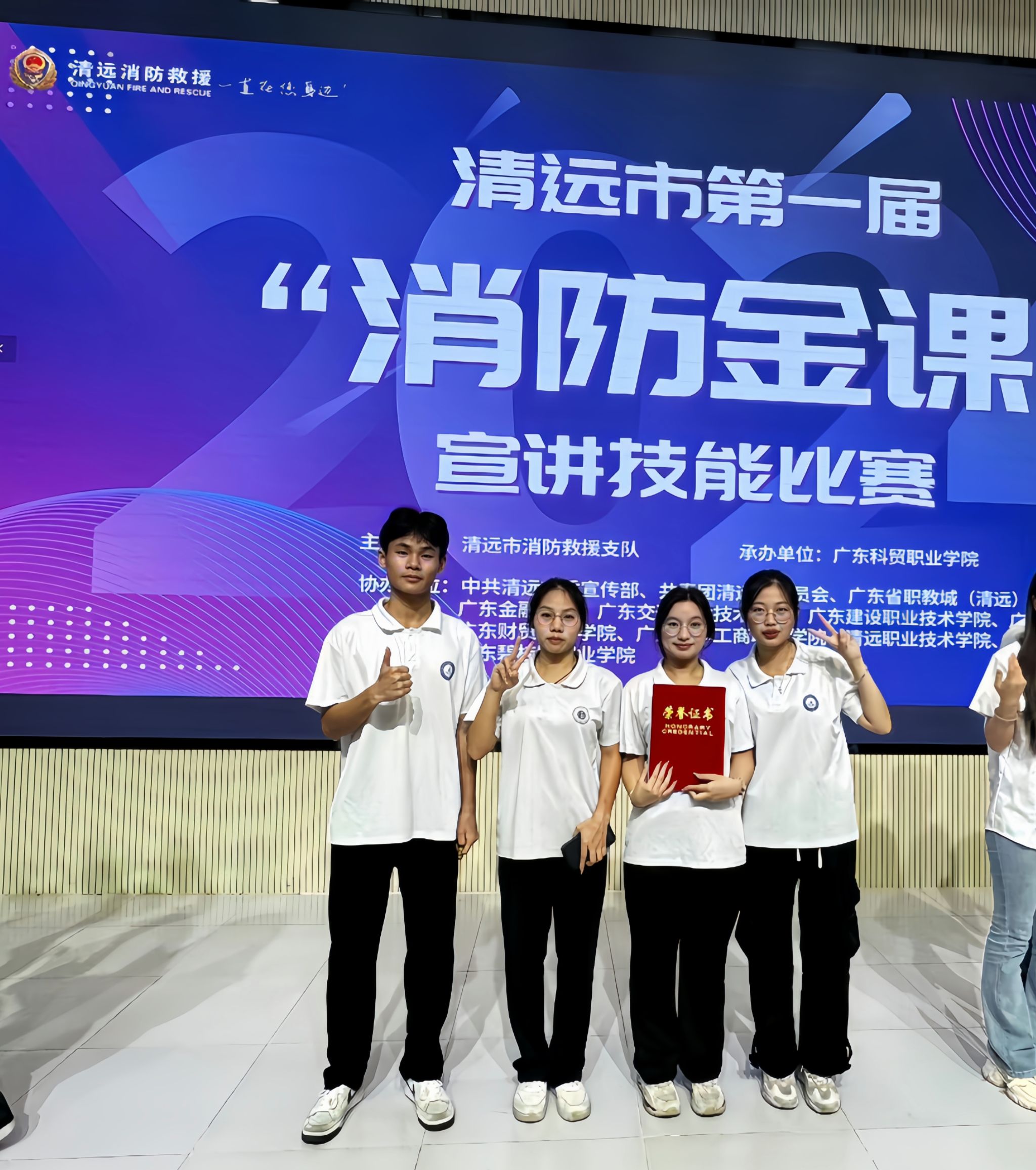 近日,我院积极组织参加2024年广东省职教城高校消防志愿者服务活动,其中,在清远市第一届“消防金课”宣讲技能决赛中,我院学子在省职教城十所院校中脱颖而出荣获二等奖,同时,学院获奖团队将受聘纳入高等院校消防志愿服务讲师团。